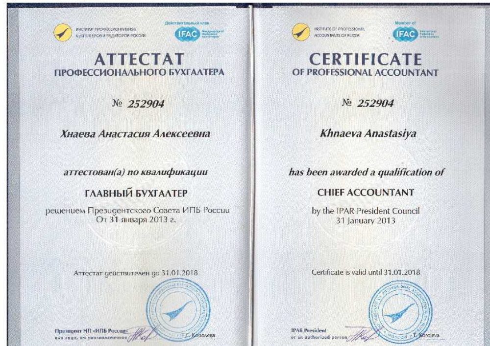 С 2013 г. являюсь действующим членом НП » Института профессиональных бухгалтеров и аудиторов России».